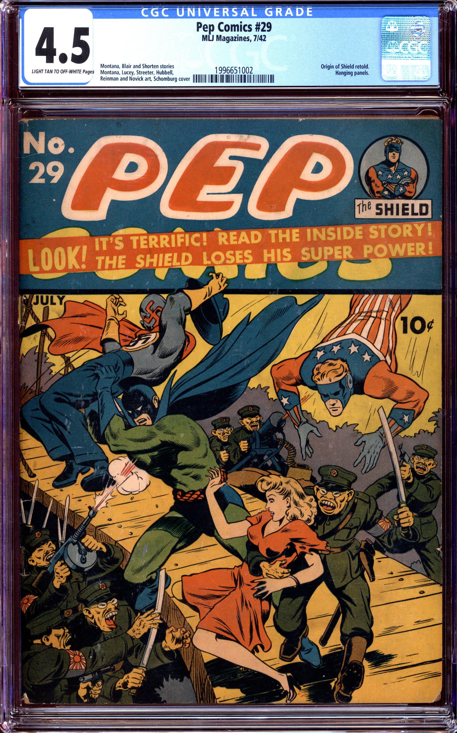 Alex Schomburg cover art. Origin of Shield retold.